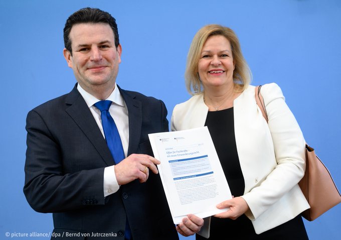 দীর্ঘদিন ধরে কর্মী সংকটে ভুগছে জার্মানি। সংকট মোকাবিলায় বিদেশ থেকে দক্ষ কর্মী আকর্ষণে অভিবাসন আইন পরিবর্তনের পরিকল্পনা নিয়েছে দেশটির সরকার। এ বিষয়ে স্বরাষ্ট্র ও শ্রম মন্ত্রণালয়ের তৈরি করা নতুন খসড়ার অনুমোদন দিয়েছে চ্যান্সেলর ওলাফ শলৎসের মন্ত্রিসভা। জার্মানির পার্লামেন্টের দুই কক্ষে পাস হলে আইনটি কার্যকর হবে।
