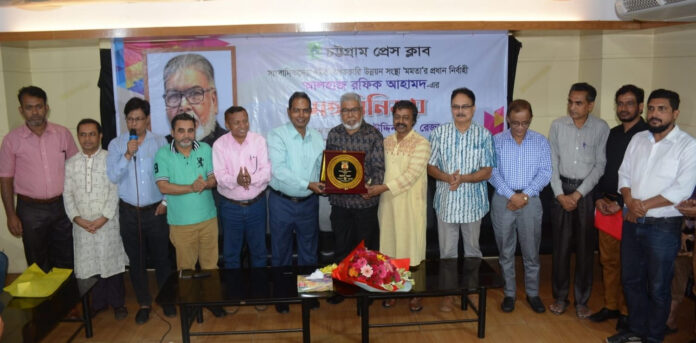 অনুষ্ঠানের শুরুতে আলহাজ রফিক আহমদের জীবনী পাঠ করেন প্রেস ক্লাবের প্রচার ও প্রকাশনা সম্পাদক খোরশেদুল আলম শামীম। প্রেস ক্লাবের সহসভাপতি মনজুর কাদের মনজু অতিথিকে ফুলেল শুভেচ্ছা জানান। এরপর চট্টগ্রাম প্রেস ক্লাবের পক্ষ থেকে অতিথিকে সম্মাননা স্মারক প্রদান করা হয়।