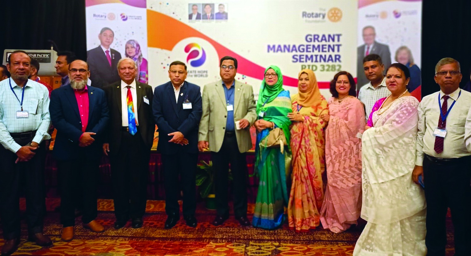 বিশ^ব্যাপী রোটারির পতাকা উড্ডীন করতে সকল ভালো কাজের সাথে থাকার অঙ্গীকারের মধ্য দিয়ে অনুষ্ঠিত রোটারি ডিস্ট্রিক্ট ৩২৮২-এর গ্র্যান্ট ম্যানেজমেন্ট সেমিনার ও ডিস্ট্রিক ট্রেনিং অ্যাসেম্বলীতে স্বতস্ফূর্ত অংশগ্রহণ করেছেন রোটারি ক্লাব অব চিটাগাং ইস্ট-এর প্রতিনিধিবৃন্দ।