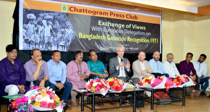 নেদারল্যাণ্ডের সাবেক সংসদ সদস্য ও মানবাধিকারকর্মী হ্যারি ভ্যান বোমেল বলেন, বাংলাদেশের নাগরিকদের সাথে এক হয়ে আমরা দ্রুত সময়ের মধ্যে জেনোসাইড বিষয়ে আন্তর্জাতিক স্বীকৃতি অর্জনে সফল হবো বলে আমাদের বিশ্বাস। চারটি আন্তর্জাতিক সংস্থা ইতোমধ্যে ১৯৭১ সালে বাংলাদেশে সংঘটিত জেনোসাইডের স্বীকৃতি দিয়েছে। বাংলাদেশে এসে আমরা ঢাকা ও চট্টগ্রামে বিভিন্ন শ্রেণির প্রতিনিধিদের সাথে সাক্ষাৎ করেছি। ঢাকায় ডাচ্ রাষ্ট্রদূতের সাথেও এ ব্যাপারে আমাদের সাক্ষাৎ হয়েছে। আর্মেনিয়া জেনোসাইডের স্বীকৃতি পেতে ১০০ বছর লেগেছে। আশা করি, বাংলাদেশের ক্ষেত্রে অত সময় লাগবে না। আমরা ফিরে গিয়ে আমাদের দেশের রাজনৈতিক নেতৃবৃন্দের সাথে এ ব্যাপারে কথা বলবো। বাংলাদেশে এসে যে অভিজ্ঞতা হয়েছে তা শেয়ার করবো তাদের সাথে। যাতে করে ডাচ পার্লামেন্ট এই ব্যাপারে পদক্ষেপ নেয়। আমরা ডাচ মিডিয়া, ইউকে মিডিয়ার সাথে কথা বলবো। প্রয়োজন হলে আমরা বাংলাদেশে আবার আসবো।