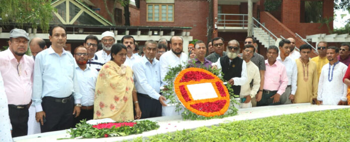 গোপালগঞ্জের টুঙ্গিপাড়ায় জাতির পিতা বঙ্গবন্ধু শেখ মুজিবুর রহমানের সমাধিতে ফুল দিয়ে শ্রদ্ধাঞ্জলি নিবেদন করেছেন দেশের বিভাগীয় কমশিনার অফিস, জেলা প্রশাসকের কার্যালয় ও উপজেলা প্রশাসন কার্যালয়ে কর্মরত প্রশাসনিক কর্মকর্তাদের সমন্বয়ে গঠিত বাংলাদেশ মাঠ প্রশাসন প্রশাসনিক কর্মকর্তা কল্যাণ সমিতির (বামাপ্রককস) কেন্দ্রীয় কমিটির নেতৃবৃন্দ। গত শনিবার (২৭ মে) সংগঠনের কেন্দ্রীয় সভাপতি এস.এম জাহিদুল ইসলাম ও