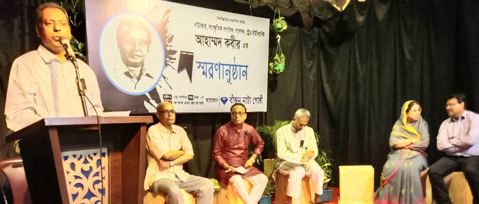 বীজন নাট্য গোষ্ঠীর উদ্যোগে নাট্যকার, লেখক ও গবেষক প্রয়াত আহাম্মদ কবীরের স্মরণানুষ্ঠান বৃহস্পতিবার (৮ জুন) সন্ধ্যায় চট্টগ্রাম জেলা শিল্পকলা একাডেমির আর্ট গ্যালারি হলে অনুষ্ঠিত হয়েছে।