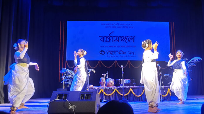 সমাজ, রাজনীতি, অর্থনীতি ও সংস্কৃতি বিষয়ক গবেষনাধর্মী সংগঠন সমাজ সমীক্ষা সংঘের আয়োজনে নগরীর থিয়েটার ইনস্টিটিউট মিলনায়তনে অনুষ্ঠিত হয়েছে গান, নাচ ও কবিতায় বর্ষাবরণ অনুষ্ঠান। অনুষ্ঠানে বর্ষা বন্দনায় বিশিষ্ট কবি ও সাহ্যিতিক কামরুল হাসান বাদল জীর্ণ পুরানোকে পিছনে ফেলে নতুনের জয়গান গ্রহণের আহবান জানান। সমাজ সমীক্ষা সংঘের সভাপতি কাজী মাহমুদ ইমাম বিলুর সভাপতিত্বে অনুষ্ঠিত উদ্বোধনী পর্বে স্বাগত বক্তব্য রাখেন সমাজ সমীক্ষা সংঘের নির্বাহী পরিচালক কল্লোল দাশ। মঞ্চে অন্যান্যর মধ্যে উপস্থিত ছিলেন সমাজ সমীক্ষা সংঘের নির্বাহী সভাপতি দেবাশীষ রায়, যুগ্ম নির্বাহী পরিচালক সাইফুদ্দিন আহমেদ মিনহাজ, বর্ষামঙ্গল প্রস্তুতি কমিটির যুগ্ম আহবায়ক মিটু কুমার শীল, সদস্য সচিব পার্থ প্রতিম বড়–য়া প্রমুখ। অনুষ্ঠানের উদ্বোধনী পর্বের শেষে সমাজ সমীক্ষা সংঘের বর্ষামঙ্গল উপলক্ষ্যে প্রকাশিত সংকলন সমবীক্ষণ বর্ষামঙ্গল সংখ্যা উম্মোচন করেন বিশিষ্ট কবি ও সাহ্যিতিক কামরুল হাসান বাদল এবং সমবীক্ষণ এর সহ সম্পাদক সৌরভ চৌধুরী।