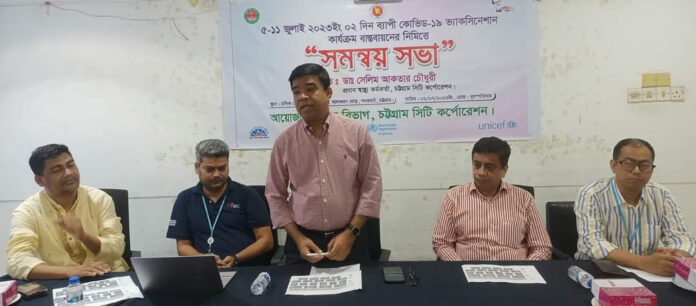 বৃহস্পতিবার চসিক জেনারেল হাসপাতালে চসিকের প্রধান স্বাস্থ্য কর্মকর্তা ডা. সেলিম আকতার চৌধুরীর সভাপতিত্বে এ উপলক্ষে একটি সমন্বয় সভা অনুষ্ঠিত হয়। সভায় বক্তব্য রাখেন চসিক স্বাস্থ্য স্ট্যান্ডিং কমিটির সদস্য ও কাউন্সিলর আব্দুস সালাম মাসুম, স্বাস্থ্য কর্মকর্তা ডাঃ মোঃ ইমাম হোসেন রানা, বিভাগীয় কো-অর্ডিনেটর ডাঃ ইমং প্রু চেীধুরী, জোনাল মেডিকেল অফিসার ডাঃ মোঃ রফিকুল ইসলাম, ডাঃ তপন কুমার চক্রবর্ত্তী, ডাঃ মোঃ হাসান মুরাদ চেীধুরী, ডাঃ আকিল মাহমুদ নাফে, ডাঃ জুয়েল মহাজন । মূল কর্মসূচী সর্ম্পকে বিভিন্ন তথ্য উপস্থাপন করেন বিশ্ব স্বাস্থ্য সংস্থার সার্ভিল্যান্স এন্ড ইম্যুনাইজেশন মেডিকেল অফিসার ডাঃ মোঃ সরওয়ার আলম। সভা পরিচালনা করেন ভ্যাকসিনেশান ইনচার্জ মোঃ আবু ছালেহ।