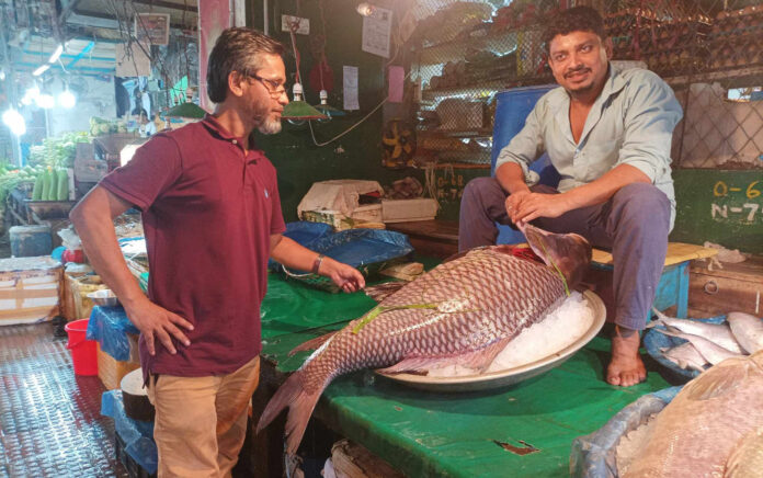কাজীর দেউড়ি বাজারে অতিকায় কাতল মাছ