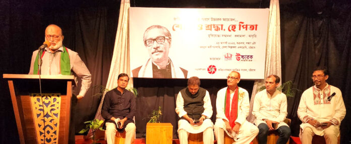 ফারুক তাহের নির্দেশিত বৃন্দ আবৃত্তি ‘মুজিবের রক্তজবা প্রাণ’ পরিবেশন করেন উচ্চারক এ এস এম এরফান, মৌসুমী চক্রবর্তী, শামীমা ইয়াছমিন, এ্যানি চৌধুরী ও রাকিব রায়হান।