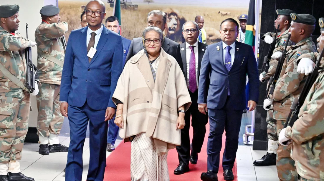 গত ২২ আগস্ট রাতে জোহানেসবার্গে পৌঁছান প্রধানমন্ত্রী।
