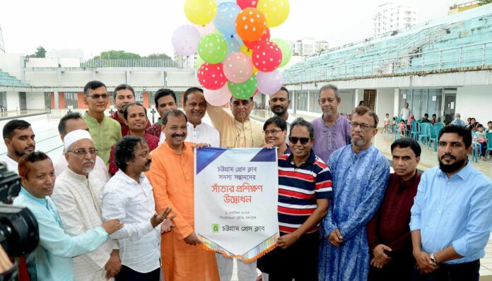 চট্টগ্রাম প্রেস ক্লাবের উদ্যোগে চট্টগ্রাম জেলা ক্রীড়া সংস্থার সহযোগিতায় আউটার স্টেডিয়াম সংলগ্ন সুইমিং কমপ্লেক্সে প্রেস ক্লাবের সদস্য সন্তানদের সাঁতার প্রশিক্ষণ শুরু হয়েছে। শুক্রবার (১ সেপ্টেম্বর) সকাল ১০টায় প্রধান অতিথি হিসেবে উপস্থিত থেকে এ সাঁতার প্রশিক্ষণের উদ্বোধন করেন চট্টগ্রাম জেলা ক্রীড়া সংস্থার (সিজেকেএস) সাধারণ সম্পাদক ও সাবেক মেয়র আ জ ম নাছির উদ্দিন। চট্টগ্রাম প্রেস ক্লাবের সভাপতি সালাহ্উদ্দিন মো. রেজার সভাপতিত্বে স্বাগত বক্তব্য দেন চট্টগ্রাম প্রেস ক্লাবের সাধারণ সম্পাদক দেবদুলাল ভৌমিক।