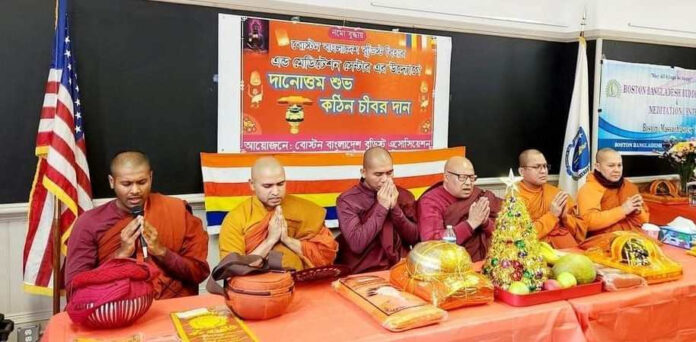 গত রবিবার বস্টনে বসবাসরত বাংলাদেশী বৌদ্ধদের প্রাচীন ও প্রধান সংগঠন বস্টন বাংলাদেশ বুড্ডিষ্ট এসোসিয়েশনের উদ্যোগে বোস্টন বাংলাদেশ বুড্ডিষ্ট বিহার ও মেডিটেশন সেন্টারের বার্ষিক পবিত্র কঠিন চীবর দান অনুষ্ঠিত হয়। নেপালের বিশিষ্ট বৌদ্ধ ধর্মগুরু ও ইন্টারন্যাশনাল শাক্যমুনি বুড্ডিস্ট বিহারের অধ্যক্ষ ডক্টর