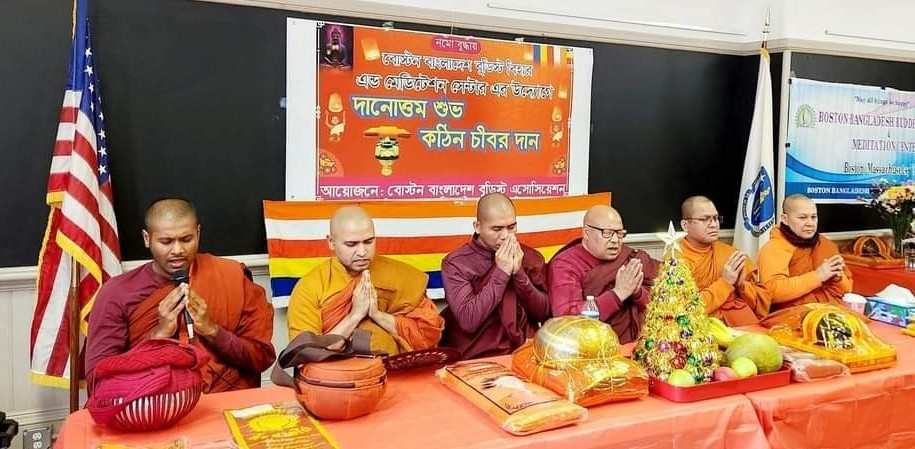 পৌঁছাবেন ইবিং আমেরিকার বিভিন্ন রাজ্যে ধর্মসভা যোগদান করবেন । সভায় বক্তব্য রাখেন সংগঠনের প্রতিষ্ঠাতা সাধারন সম্পাদক ও ওয়ার্ল্ড ফেডারেশন অফ বাংলাদেশী বুড্ডিষ্টস (WFBB) এর মহাসচিব সুহাস বড়ুয়া, প্রকৌশলী শুভ্রজয় বড়ুয়া, অতিথি হিসাবে উপস্থিত ছিলেন, বাংলাদেশ থেকে আগত বাগোয়ান ফরাচিং বৌদ্ধ বিহারের সাধারন সম্পাদক পুর্ণেন্দু বড়ুয়া (নসু) । সুহাস বড়ুয়া বলেন, সংগঠনের উদ্যেগে সকলের সহযোগিতা নিয়ে বোস্টনে একটি সার্বজনীন বাংলাদেশী বৌদ্ধ বিহার প্রতিষ্ঠা করা হবে, যা বাংলাদেশ এবং বৌদ্ধ সম্প্রদায়ের জন্য গৌরবের বিষয় । অনুষ্ঠানে সূচনা সংগীত পরিবেশন করেন, তূর্ণা বড়ুয়া। উক্ত কঠিন চীবর দান অনুষ্ঠানে শ্রীলঙ্কা, নেপাল, মায়ানমার, কম্বোডিয়া প্রভৃতি দেশের বৌদ্ধ ভিক্ষু এবং কমিউনিটির নেতৃবৃন্দসহ প্রবাসী বাংলাদেশীরা যোগদান করেন।