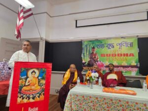 তিব্বতের রাজার আমন্ত্রণে তিব্বত গিয়ে সমগ্র চীন দেশে সভ্য নাগরিক জীবন ও শিক্ষা প্রসারে যুগান্তকারী অবদান রেখছিলেন, চীনের জনগন আজও তাঁদেরকে সম্মানের আসনে রেখেছে। আচার্য শীলভদ্র ছিলেন, কুমিল্লার চৌদ্দগ্রামের গর্বিত সন্তান, যিনি ছিলেন, নালন্দা বিশ্ববিদ্যালয়ের চ্যান্সেলর। আমরা বাঙ্গালী হিসাবে তাঁদের অসাধারন অবদান গুলো জানা খুবই দরকার । আমাদের হাজার বছরের সভ্যতাকে ধর্মীয় দৃষ্টি কোন থেকে বিচার না করে বাঙ্গালী জাতির গৌরব গাঁথা ও ঐতিহ্যগুলো প্রজন্মকে জানাতে হবে। একথা সত্য যে, পৃথিবীর আধুনিক সভ্যতার দেশগুলি যখন, তীর ধনুক দিয়ে জন্তু জানোয়ার শিকার করে জীবিকা নির্বাহ করতো, তখন বাঙ্গালীরা একের পর এক বিশ্ববিদ্যালয় গড়ে, শিক্ষা ও জ্ঞান বিতরন করতো, আর আধুনিক নাগরিক সভ্যতা ও সংস্কৃতি উপহার দিতো। অনুষ্ঠানে সভাপতিত্ব করেন আন্তর্জাতিক শাক্যমুনি বৌদ্ধ বিহারের অধ্যক্ষ ডক্টর পান্নালোকা মহাস্থবির, বিশেষ বক্তা হিসাবে ধর্ম দেশনা করেন, হার্ভার্ড বিশ্ববিদ্যালয়ের দু’জন স্কলার যথাক্রমে, কুশলা স্থবির এবং সামিতা স্থবির। বক্তব্য রাখেন, প্রাক্তন সভাপতি, বিশিষ্ট লেখক ও গবেষক, তরুণ বড়ুয়া, প্রকৌশলী দেবাশীষ বড়ুয়া, প্রকৌশলী সুতপা বড়ুয়া, শিল্পী জুয়েল বড়ুয়া। প্রাক্তন সভাপতি শিমুল বড়ুয়ার সঞ্চালনায় অনুষ্ঠিত সভায় ধন্যবাদ বক্তব্য রাখেন, বোস্টন বাংলাদেশ বুড্ডিস্ট এসোসিয়েশনের সভাপতি প্রজয় বড়ুয়া।