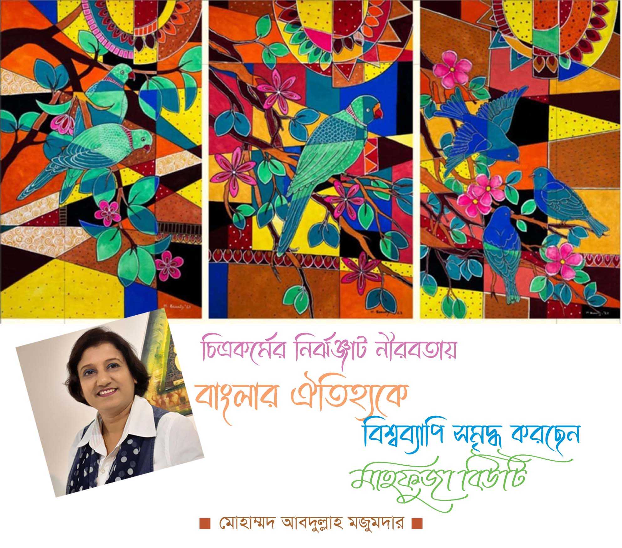 চিরায়িত বাংলার অকৃত্রিম সৌন্দর্য্য ও কালের আবর্তনে আচড়েপড়া চির সজীব ঐতিহ্যকে কাল্পনিক মনন থেকে রঙতুলির মাধ্যমে ফুটিয়ে তোলার এক অনন্য শিল্পী মাহফুজা বিউটি। প্রথমে বাস্তবধরমী বিভিন্ন চিত্র অঙ্কণ করলেও বর্তমানে তিনি জোড় দিয়েছেন কাল্পনিক চিত্রকর্ম নির্মাণে।তার চিত্রকর্মের মাধম্যে বাংলার এতিহ্যকে বিশ্বব্যাপি প্রসারে ভূমিকা রেখে চলেছেন। জীবনের নানা বোঝাপড়ার মধ্যে নানা বাধা বিপত্তি প্রতিবন্ধকতা সত্ত্বেও যিনি ছবি আঁকা কখনও ছাড়েননি এবং রঙতুলি ক্যানভাসের হাত ধরেই পৌঁছে গেছেন বিশ্বের দরবারে