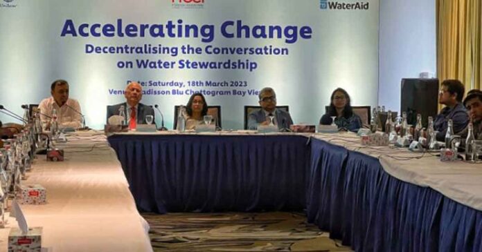 বিশ্ব পানি দিবস-২০২৩ উপলক্ষে রেডিসন ব্লু-চট্টগ্রাম বে ভিউতে অনুষ্ঠিত ‘এক্সিলারেটিং চেঞ্জ: ডিসেন্ট্রালাইজিং দ্য কনভারসেশন অন ওয়াটার স্টুয়ার্ডশিপ’ শীর্ষক এক গোলটেবিল বৈঠকে বক্তারা এ আহবান জানান। ইউনিলিভার বাংলাদেশ লিমিটেড, ফরেন ইনভেস্টরস চেম্বার অফ কমার্স অ্যান্ড ইন্ডাস্ট্রি (এফআইসিসিআই) এবং ওয়াটারএইড বাংলাদেশ যৌথভাবে শনিবার এই গোলটেবিল বৈঠকের আয়োজন করে।