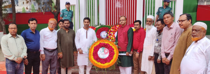 মহান স্বাধীনতা ও জাতীয় দিবস উপলক্ষে আজ ২৬ মার্চ রোববার সূযোদয়ের সাথে সাথে চট্টগ্রাম মিউনিসিপ্যাল মডেল স্কুল এন্ড কলেজ প্রাঙ্গণে কেন্দ্রীয় শহিদ মিনারে পুষ্পস্তবক অর্পণ করছেন জেলা সিভিল সার্জন ডা. মোহাম্মদ ইলিয়াছ চৌধুরী। এসময় অন্যান্যের মধ্যে উপস্থিত ছিলেন ডেপুটি সিভিল সার্জন ডাঃ মোহাম্মদ ওয়াজেদ চৌধুরী অভি, সিনিয়র স্বাস্থ্য শিক্ষা অফিসার থোয়াইনু মং মারমা, জেলা স্বাস্থ্য তত্ত্বাবধায়ক সুজন বড়ুয়া, জেলা ইপিআই সুপারিন্টেন্ডেন্ট মোহাম্মদ হামিদ আলী, প্রধান সহকারী এসএম সাহিদুল ইসলাম, পিএ টু সিভিল সার্জন মফিজুল আলম, স্যানিটারী ইন্সপেক্টর টিটু কান্তি পাল, স্যানিটারী ইন্সপেক্টর আকবর হোসেন, প্রোগ্রাম অর্গানাইজার গাজী নুর হোসেন, স্টোর কীপার জাহেদুল ইসলাম, সিসিটি জাফর উল্লাহ, ড্রাইভার খোরশেদ আলম, ড্রাইভার ইউসুফ ও অফিস সহায়ক মোহাম্মদ মুরাদ।